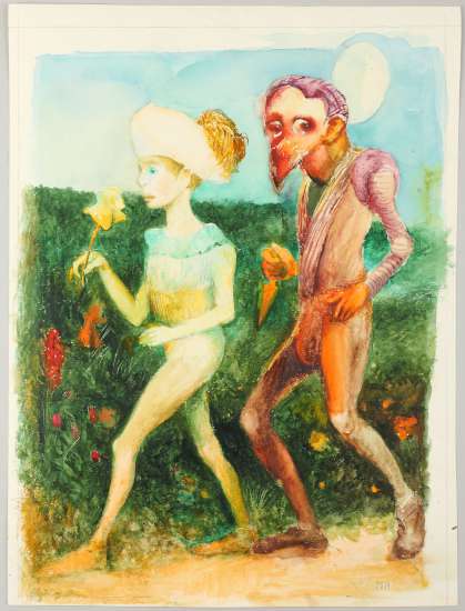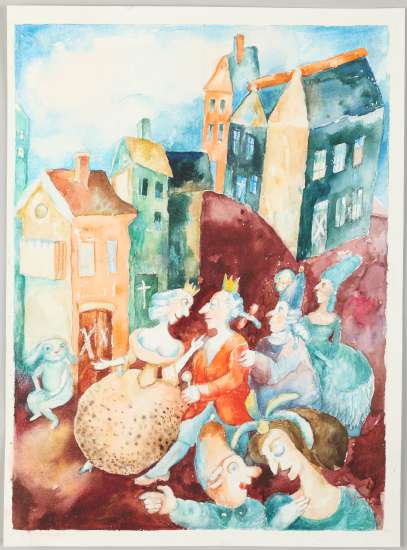 Poetyka baśni jako gatunku literackiego stała mi się bardzo bliska. Czytałam baśnie dalekowschodnie, włoskie, francuskie, baśnie Grimmów i sagi skandynawskie. W pracowni Grafiki Książki zilustrowałam Baśnie polskie Romana Zmorskiego, i po raz kolejny, Andersena. Tym razem w odmiennym niż za pierwszym razem warsztacie, z nowymi zadaniami, które stwarza książka jako przedmiot estetyczny. W roku 1977 ogłoszono w prasie konkurs IBBY (sekcji książek dla dzieci przy ONZ) na ilustracje do baśni duńskiego klasyka i fakt ten ogromnie mnie zmobilizował. Powstało wówczas kilka ilustracji kolorowych, w technice akwareli, z których dwie, jako repliki, prezentuję na obecnej wystawie w Galerii Jednej Książki. W konkursie zostałam wyróżniona trzecią nagrodą, podczas gdy pierwszej nie było.