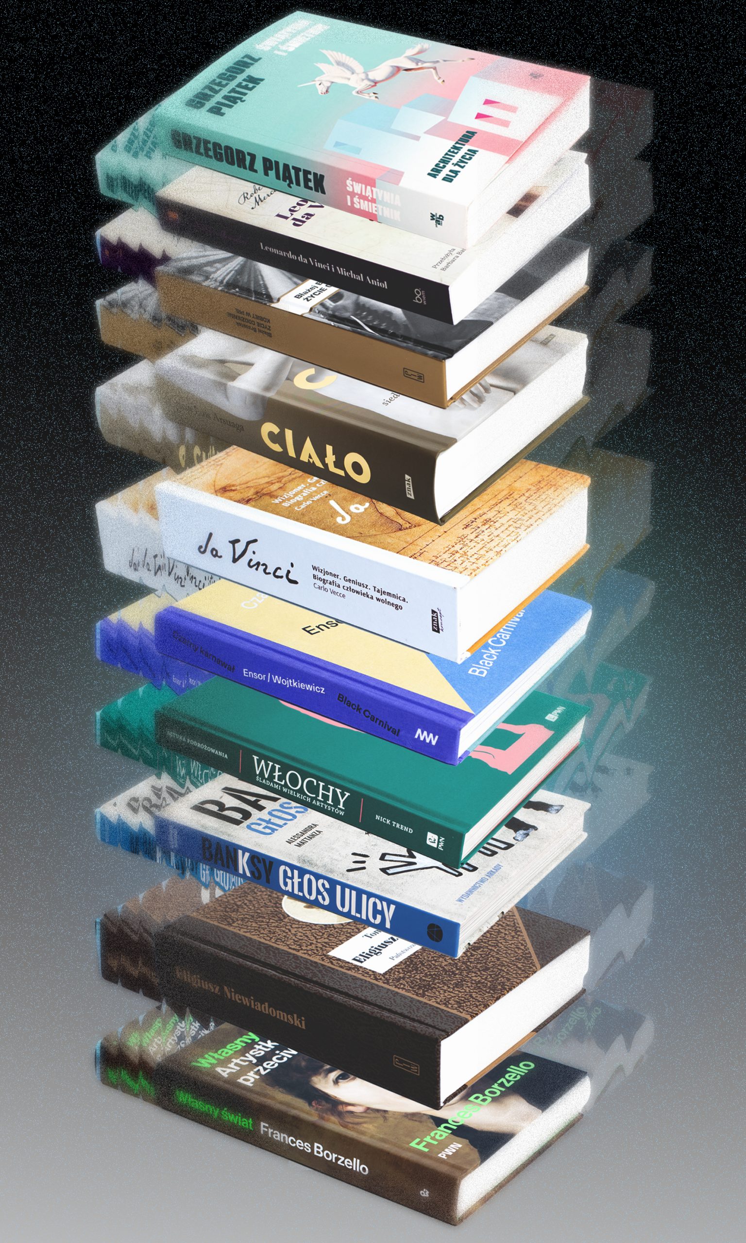 Mercadini, Roberto: Leonardo da Vinci i Michał Anioł: światło geniuszu, mrok rywalizacji; przełożyła Barbara Bardadyn. Kraków: Wydawnictwo Uniwersytetu Jagiellońskiego, 2025. ASP – Magazyn Główny, sygn. 82880.